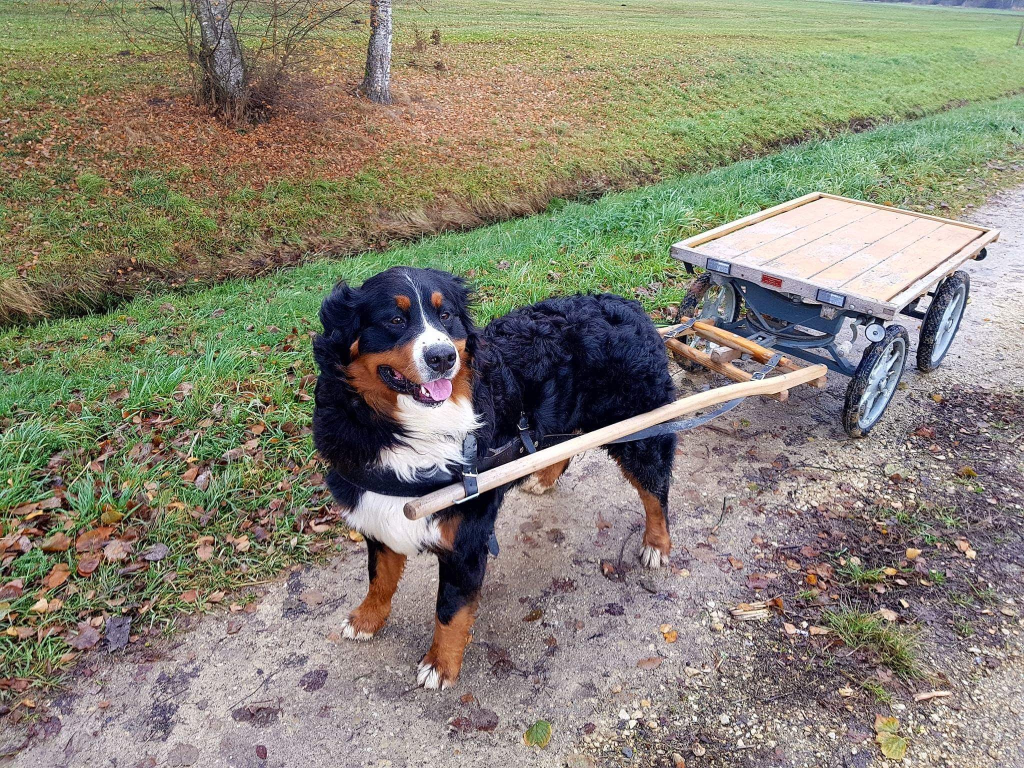Zughunde im speziellen der Berner Sennenhund aktivieren beim Ziehen ihre Urgenetik und genau das macht sie glücklich
